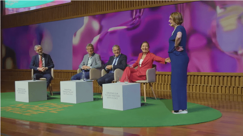 Os laureados interagiram com a plateia e compartilharam insights valiosos sobre o impacto científico e os desafios enfrentados pelos novos cientistas. David MacMillan destacou a importância de equilibrar a pesquisa básica e aplicada, enquanto Serge Haroche abordou questões de financiamento e liberdade na pesquisa. Por sua vez, May-Britt Moser enfatizou a diversidade como um elemento enriquecedor no ambiente científico.