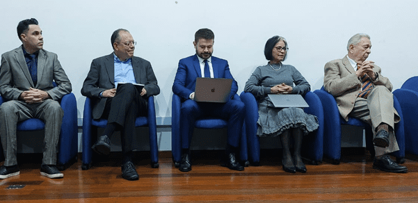 No palco, junto com o presidente da ACIESP, Adriano D. Andricopulo, e o diretor-executivo, Josué de Moraes, estavam Vanderlan Bolzani, representando os ex-presidentes da ACIESP, e Glaucius Oliva, representando a Academia Brasileira de Ciências (ABC).